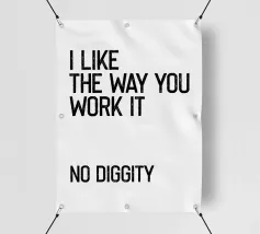 Una scena dinamica e vibrante con un individuo sicuro di sé in movimento, forse mentre balla, scrive o costruisce, su uno sfondo geometrico e audace di forme al neon e linee energiche. La frase "I Like the Way You Work It" (Mi piace il modo in cui lo fai funzionare) è caratterizzata da una tipografia elegante e moderna, con accenti giocosi come scintille e strisce di movimento, che celebrano la creatività, la fretta e l'estro.