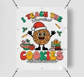 Un allegro biscotto con un cappello da Babbo Natale è circondato da decorazioni festive, libri e cioccolata calda. La scritta "Insegno ai biscotti più intelligenti #tistheseason" aggiunge un messaggio giocoso e a tema natalizio.