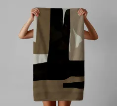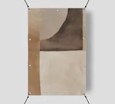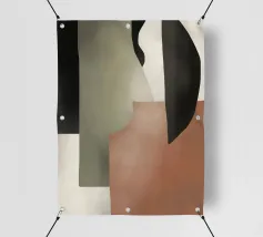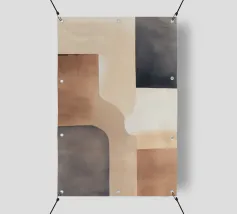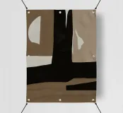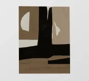Forme astratte nei toni del marrone e del nero si scontrano e si sovrappongono per creare un senso di profondità e di intrigo. Le diverse tonalità suggeriscono un approccio minimalista, mentre le forme stilizzate invitano all'interpretazione e alla contemplazione individuale.
