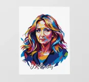 Celebrate il magico mondo della letteratura con questo vivace disegno WPAP Pop Art che raffigura J.K. Rowling, l'amata autrice della serie di Harry Potter. Utilizzando audaci forme geometriche e una vivace tavolozza di colori, quest'opera d'arte reimmagina la Rowling in uno stile moderno e astratto. La tecnica WPAP (Wedha's Pop Art Portrait) cattura lo spirito creativo della scrittrice e l'incantevole eredità che ha creato con le sue storie. Perfetto per gli amanti dei libri, i fan della letteratura fantasy e gli appassionati d'arte, questo disegno è un tributo unico a una delle autrici più influenti del nostro tempo.