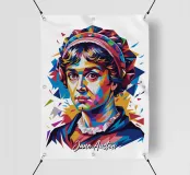 Celebrate la genialità letteraria di Jane Austen con questo vivace disegno Pop Art WPAP. Utilizzando audaci forme geometriche e una ricca tavolozza di colori, quest'opera d'arte reimmagina l'amata autrice di Orgoglio e pregiudizio in uno stile moderno e astratto. La tecnica WPAP (Wedha's Pop Art Portrait) cattura il fascino e l'arguzia senza tempo della Austen, riflettendo il suo significativo contributo alla letteratura e al commento sociale. Perfetto per gli appassionati di letteratura, gli amanti dell'arte e i fan dei romanzi classici, questo disegno è un tributo unico a una delle autrici più amate della letteratura inglese.