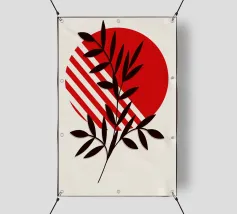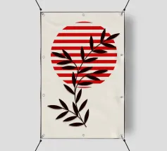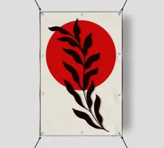 Quest'opera d'arte è caratterizzata da un audace sole rosso e da un ramo botanico scuro e fluente, che fonde forme geometriche e linee organiche. Il design si ispira all'estetica giapponese, fondendo il minimalismo giapponese e l'armonia scandinava. Il contrasto tra il nero profondo e il rosso vibrante e la crema morbida crea una composizione suggestiva e tranquilla. Perfetto per chi apprezza la natura, l'equilibrio e l'arte astratta senza tempo, questo pezzo dona un senso di calma ed eleganza a qualsiasi ambiente.