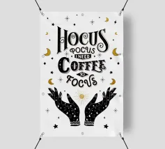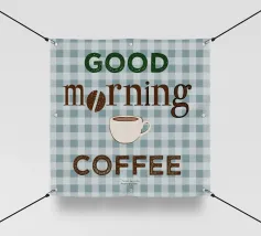 Questo è il motivo imperdibile per gli amanti del caffè. Naturalmente, una buona giornata inizia con il caffè, che sia un caffellatte, un espresso, un cappuccino, un caffè piccolo e bruno... e, e, e. Un detto umoristico per gli amanti del caffè. E qualcosa di molto speciale: l'intera frase è scritta a mano, quindi senza font di computer, ma creata appositamente per questo design. Un motivo molto simpatico per i proprietari di bar, ristoranti e simili. Questo motivo è disponibile anche senza le linee decorative della cornice.