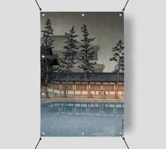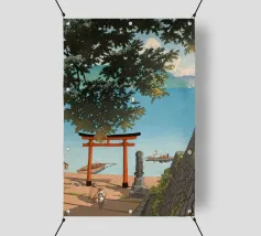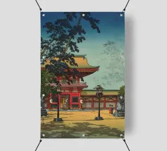 "Tōkyō Nijū Kei, Kanda Myōjin Keidai" di Kawase Hasui cattura lo spirito vibrante di Tokyo con una rappresentazione serena ma dettagliata dello storico santuario di Kanda Myōjin. Il magistrale gioco di luci e prospettive di Hasui evidenzia l'armonia tra l'architettura tradizionale e la natura circostante, creando un tranquillo paesaggio urbano. Perfetta per gli amanti dell'arte giapponese, dei paesaggi storici e delle stampe shin-hanga tradizionali, quest'opera aggiunge profondità culturale ed eleganza senza tempo a qualsiasi interno.