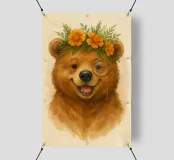 Cordiale e selvaggiamente saggio, l'Orso Botanico è una celebrazione del fascino del bosco e della giocosa eleganza. Questa creatura coccolosa emette un sorriso di gioia, adornata da una corona di calendule dorate e sbirciando attraverso un elegante monocolo. Dipinto in toni acquerello ricchi e terrosi, questo disegno porta sorrisi, intimità e un pizzico di bizzarria forestale in qualsiasi spazio. Un'aggiunta perfetta alle camerette, agli angoli di lettura o a qualsiasi altro luogo che necessiti di un amico peloso con stile.