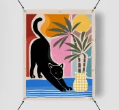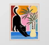 arte gatto nero, stampa gatto tropicale, poster astratto giungla, arte da parete animale moderna, illustrazione natura colorata, decoro felino audace, arte fauna minimalista, opera d'arte foglie tropicali, poster sole vibrante, decoro giungla boho, arte vaso geometrico, design gatto contemporaneo, stampa animale esotico, scena tropicale astratta, poster gatto artistico, decoro casa elegante, silhouette animale giungla, stampa moderna colorata, opera d'arte palma, arte tramonto giungla