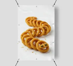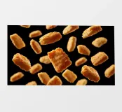 Le crocchette dorate galleggiano su uno sfondo scuro, mettendo in evidenza la loro consistenza croccante e il loro aspetto appetitoso. Il contrasto evidente mette in risalto l'attrattiva di questo delizioso snack.