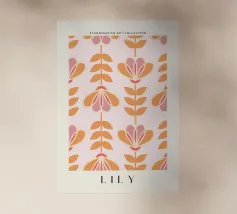 L'opera d'arte Lily, di ispirazione scandinava, combina le tonalità calde e morbide dell'arancione e del rosa con un motivo floreale minimalista, conferendo un delicato senso di calore e serenità a qualsiasi spazio. Il design pulito e simmetrico cattura l'essenza della semplicità e della bellezza nordica, rendendolo un pezzo ideale per gli interni moderni che cercano di bilanciare gli elementi naturali con il design contemporaneo. Quest'opera d'arte infonde alla vostra casa una sensazione di calma ed eleganza senza tempo.