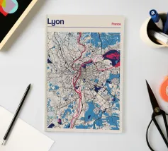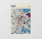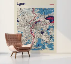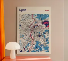 Scoprite la vibrante bellezza di Lione con questa moderna opera d'arte cartografica! Le linee pulite e i colori decisi mostrano ad arte i fiumi Rodano e Saona e la struttura urbana della città. Ideale per gli amanti di Lione o come elegante decorazione da parete che conferisce eleganza e fascino francese a qualsiasi casa.