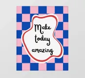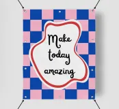 Motivo a scacchi blu e rosa con lo slogan "Make today amazing".