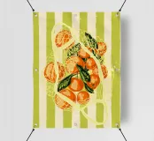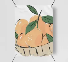 Mandarini vibranti in un sacchetto per prodotti in rete dall'estetica vintage