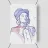 Marlene Dietrich con cappello, sigaretta e blazer, o giacca. Disegno rosso-blu, biro su carta.