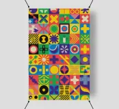 Un motivo complesso e vivace composto da una griglia di piastrelle geometriche, ognuna con un disegno e una combinazione di colori unici, che creano una matrice visiva sorprendente.