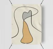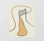 Linee e forme geometriche astratte creano una composizione minimalista dai toni neutri. Linee nere curve delineano due sezioni distinte, una riempita di grigio e l'altra di beige.