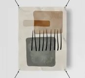 Arte digitale astratta caratterizzata da linee, forme organiche e geometriche con texture e pennellate nere in morbide tonalità terrose di marrone e grigio. Arte moderna per interni essenziali, scandinavi, bohémien e boho. Godetevi l'arte digitale minimalista con forme e linee morbide.