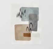 Arte digitale astratta con linee, forme organiche e geometriche con texture e pennellate nere nei toni morbidi della terra di marrone, grigio, blu e beige. Arte moderna per interni essenziali, scandinavi, bohémien e boho. Godetevi l'arte digitale minimalista con forme e linee morbide. Adatto a soggiorni, camere da letto, uffici e corridoi.