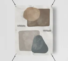 Arte astratta moderna con forme geometriche e organiche combinate con linee e texture in uno stile retrò di tendenza con toni giallo ocra, marrone e grigio. Questa serie si adatta bene a vari stili abitativi come il design, il retrò, il minimalismo, l'industria, gli interni eclettici. Adatto per studio, sala d'attesa, ingresso, soggiorno o camera da letto.