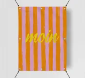 Scoprite il design allegro ed energico "MOIN - North German joie de vivre". Questo poster accattivante combina audaci strisce verticali in arancione e rosa con l'affascinante scritta "MOIN" in calligrafia gialla e ricurva. Le strisce hanno una texture leggermente irregolare e dipinta che conferisce al disegno un tocco artistico e giocoso. La parola "MOIN", un noto saluto della Germania settentrionale, è al centro dell'attenzione e conferisce al disegno un'atmosfera amichevole e invitante.