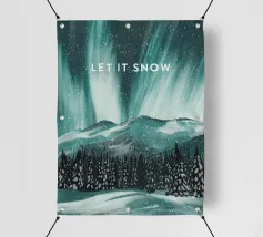 Un delicato disegno invernale di colore blu pastello con soffici scritte fatte a mano che recitano "Let it Snow". I fiocchi di neve e le texture morbide conferiscono all'opera un fascino caldo e confortante, ideale per gli amanti dell'arredamento invernale minimalista.