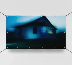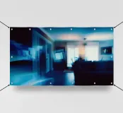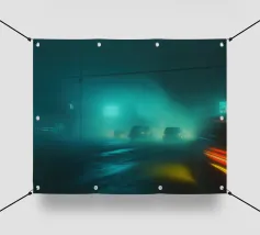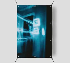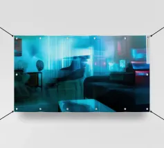 Trasformate il vostro spazio con questa rappresentazione eterea di un interno immerso in sfumature bluastre e nebulose. Perfetto per un tocco di mistero artistico.