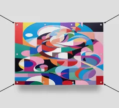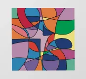 Una pletora di colori vivaci riempie la cornice, intersecata da linee nere e decise che creano un mosaico astratto di forme e tonalità. La colorazione distinta di ogni sezione contribuisce a creare un puzzle visivo giocoso e complesso che coinvolge l'occhio e l'immaginazione dell'osservatore.