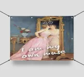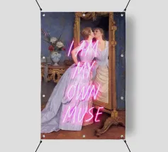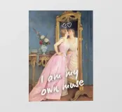 Celebrate l'autoispirazione con "I Am My Own Muse". Questa accattivante stampa pop art offre una potente rivisitazione di un dipinto classico, con una donna elegante in un fluente abito rosa che bacia teneramente il proprio riflesso in uno specchio dorato. Il testo bianco e deciso "Sono la mia musa" sovrasta l'immagine, trasformando questa scena senza tempo in una profonda dichiarazione di fiducia in se stessi e indipendenza artistica. I cuori disegnati a mano in alto aggiungono un tocco contemporaneo e affettuoso. Perfetto per celebrare la cura di sé e l'emancipazione in qualsiasi interno moderno. Realizzato con un'eccezionale risoluzione di 7000x5000 pixel.