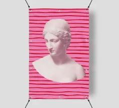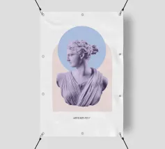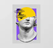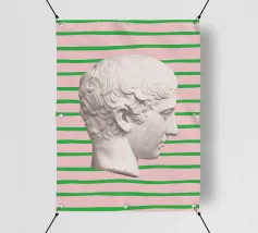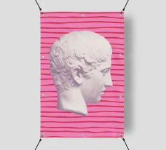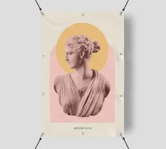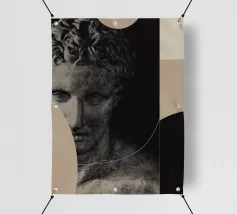 Un volto stilizzato ispirato ai busti antichi, attraversato da circuiti luminosi. Il passato incontra la tecnologia.