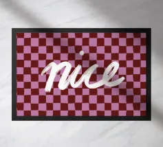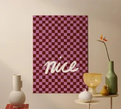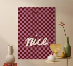 Il motivo a quadri è di un bel colore bacche e le scritte sono belle.