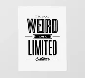 Con un'elegante scritta nera moderna su uno sfondo bianco nitido, questo pezzo emana sicurezza e individualità. Il design pulito crea un punto focale di grande effetto che si integra con qualsiasi stile di arredamento. Perfetta per chi ama le proprie stranezze e si distingue dalla massa, questa stampa aggiunge un tocco di umorismo e sicurezza a camere da letto, uffici o spazi abitativi. Il lettering contemporaneo conferisce all'opera un'atmosfera elegante e sofisticata. Trasformate le vostre pareti con questo pezzo accattivante che serve come promemoria quotidiano per celebrare la vostra personalità unica.