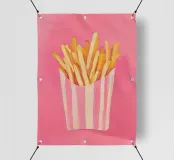 Questa affascinante illustrazione di patatine fritte in una scatola a righe pastello cattura l'aspetto nostalgico e retrò del popolare snack. Con pennellate morbide e un'armoniosa tavolozza di colori rosa, l'opera trasmette una cultura alimentare giocosa e trasforma il fast food in arte culinaria creativa.