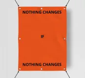 Il testo nero in grassetto su sfondo arancione trasmette un messaggio che fa riflettere: "Nulla cambia se nulla cambia".