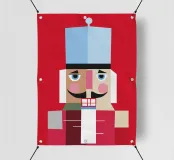 Uno schiaccianoci dall'interpretazione geometrica in un moderno design piatto, creato con forme chiare e un equilibrato spettro di colori rosso, beige e blu pastello. La sua espressione pacata e serena conferisce al classico motivo natalizio un tocco fresco e contemporaneo. La simmetria angolare, i baffi e i dettagli minimalisti rendono l'illustrazione una dichiarazione di stile e modernità per il periodo natalizio.