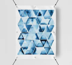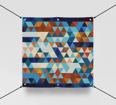 Elegante disegno geometrico a triangolo in blu mare e grigio. Minimalista, moderno e con una raffinata texture retrò.