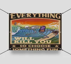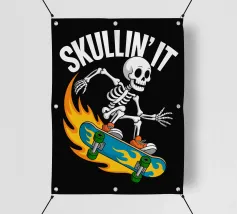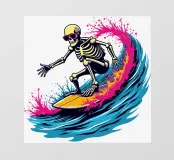 Scatenatevi sul surf con questo fantastico skeleton rider! Questo disegno raffigura uno scheletro che sfreccia con stile su un'onda colorata. È un mix perfetto di cultura balneare e un tocco di macabro. Prendete questo design radicale per la vostra prossima avventura in spiaggia (o semplicemente per avere un aspetto cool).