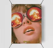Donna che guarda l'esplosione che potrebbe essere o meno il risultato diretto delle sue azioni. Collage di vibrazioni retrò anni '70 di MsGonzalez