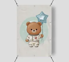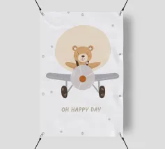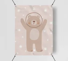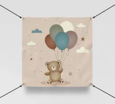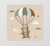 Questo simpatico motivo mostra un allegro orso che fluttua dolcemente nell'aria con un paracadute colorato. I tenui colori beige e pastello in combinazione con i motivi delicati e le nuvole minimaliste conferiscono a questa illustrazione un fascino senza tempo. Un disegno perfetto per gli amanti dei simpatici animali e degli scenari da sogno.Simpatico motivo con un orso fluttuante Colori tenui e dettagli deliziosi Design minimalista con colori pastello. Stile ispirato alle illustrazioni di animali e natura Ideale per gli amanti degli animali e del gioco