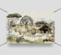 Un vivace collage di illustrazioni vintage con bellissimi e colorati pappagalli verdi appollaiati in mezzo a un lussureggiante paesaggio floreale. La scena è ricca di fascino tropicale ed esotico, poiché i pappagalli si stagliano sullo sfondo del fogliame vibrante della giungla. Intorno a loro sbocciano incredibili fiori esotici, mentre i rami di palma aggiungono un tocco di eleganza tropicale. Sullo sfondo, una mappa d'epoca emerge dolcemente, aggiungendo un senso di avventura e di viaggio. Questa miscela armoniosa di natura, fauna selvatica e fascino vintage crea un disegno senza tempo, perfetto per gli amanti dei paesaggi esotici e dell'arte nostalgica.