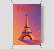 Un poster minimalista e vibrante che cattura tutta la magia di Parigi nell'ora d'oro. La Torre Eiffel si erge elegantemente su una gradazione di viola, rosa e arancione, evocando la poesia di un crepuscolo parigino. Perfetta per un arredamento urbano e chic, questa illustrazione modernizza l'icona francese con stile e morbidezza.