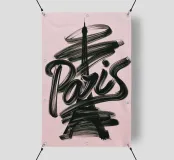 Questo poster moderno presenta la Torre Eiffel leggermente delineata dietro pennellate calligrafiche nere e dinamiche che scrivono "Paris" su uno sfondo rosa tenue. Artistica ed energica, l'illustrazione bilancia l'eleganza urbana e le vibrazioni femminili di tendenza con un impatto creativo.