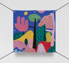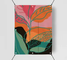 Un patchwork allegro e commovente di piante stilizzate, motivi vivaci e un grande cuore affettuoso. Questa opera d'arte eclettica è una gioiosa celebrazione dell'amore, della crescita e della bellezza artigianale.