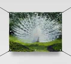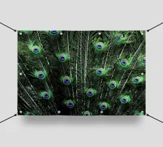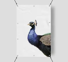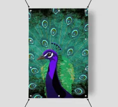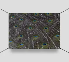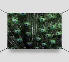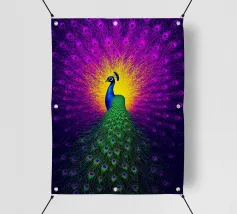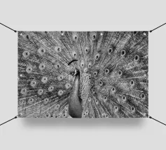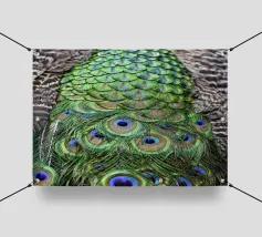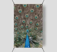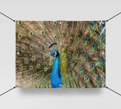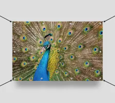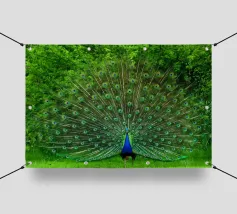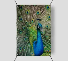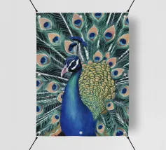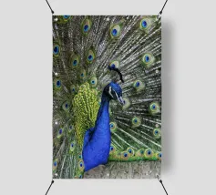 Una fotografia straordinaria che cattura un pavone in un'esibizione completa e ipnotica. I ricchi toni gioiello delle piume e l'imponenza della coda ne fanno un'opera d'arte di grande impatto.