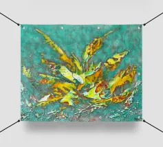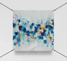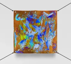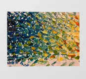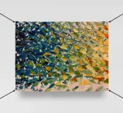 Il dipinto è colorato, con un mix di rosso, blu, giallo e verde. I toni accesi creano un'atmosfera gioiosa ed energica che cattura immediatamente l'attenzione.