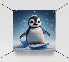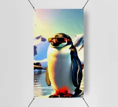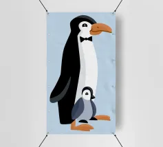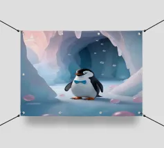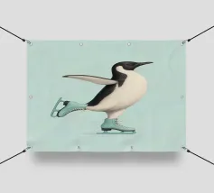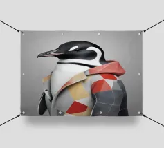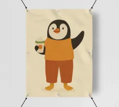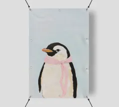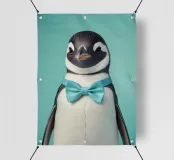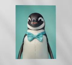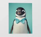 Un'illustrazione divertente ed elegante di un pinguino con papillon in una moderna tavolozza di colori verde acqua. Questa stravagante opera d'arte conferisce un'atmosfera giocosa ed elegante a qualsiasi parete. Perfetto per gli amanti degli animali, per le camere dei bambini, per gli uffici o come regalo unico.