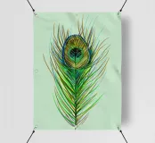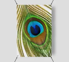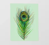 Disegno ad acquerello con pennarelli ad acquerello della piuma della coda di un pavone. Il disegno è piuttosto disordinato e grossolano.