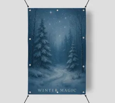 Idilliaco poster invernale con due conigli seduti in una foresta innevata. I fiocchi di neve che cadono dolcemente e i maestosi abeti creano un'atmosfera tranquilla e fiabesca. Questo murale combina motivi animali e natura invernale ed è perfetto per decorare il soggiorno, la camera da letto o la stanza dei bambini. Un'opera d'arte che porta la pace, l'intimità e la magia dell'inverno in ogni casa, ideale per gli amanti degli animali e della natura.