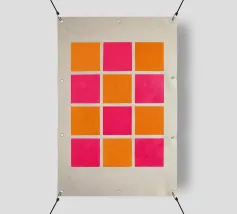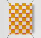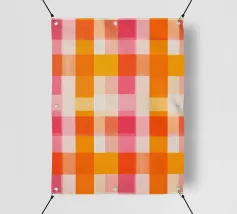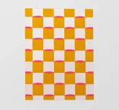 Questo vivace quadro astratto combina un motivo a scacchiera in giallo senape, rosa e bianco con forme geometriche per creare un'atmosfera creativa e moderna. I colori vivaci e gli elementi minimalisti rendono quest'opera d'arte di grande effetto in qualsiasi stanza.