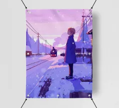 Ragazza all'interno di un treno in autunno Lofi Art