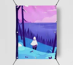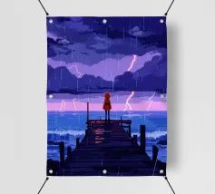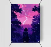 Ragazza in una giungla bloccata in una tempesta di fulmini notte Lofi Art