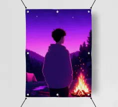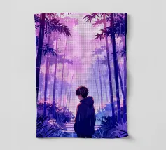Ragazzo nella foresta in una notte di pioggia Lofi Art