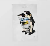 Illustrazione comica dell'interpretazione della barzelletta in bianco e nero, riguardante i pinguini e i giornali.